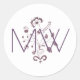Pegatina Redonda Elegantes Iniciales Florales Monograma Frambuesa