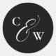 Pegatina Redonda Elegantes iniciales simple boda blanco y negro