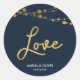 Pegatina Redonda Elegantes luces azules Faux Gold Boda Love