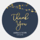 Pegatina Redonda Elegantes luces azules Faux Gold Gracias