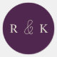 Pegatina personalizada de boda con elegantes iniciales beige claro sobre un fondo rico y oscuro púrpura. Perfecta para parejas,