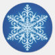 Pegatina Redonda Elegantes Navidades de copos de nieve azules