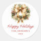 Pegatina Redonda Elegantes Navidades Gold Wreath Felices Fiestas