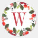 Pegatina Redonda Elegantes Navidades Rojos Verdor Monograma Wreath
