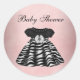 Pegatina Redonda Elegantes Pegatinas de Baby Shower rosados y negro