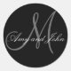 Pegatina Redonda Elegantes pegatinas de boda monograma negro