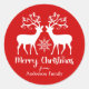 Navidades rojos redondos regalan pegatinas con un elegante ilustracion de renos y hermosamente escrito guión de Feliz Navidad, así como el nombre de la familia personalizado.