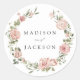 Pegatina Redonda Elegantes Rosas de Rubor y Boda de Verdor