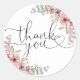 Pegatina Redonda Elegantes Rosas Floral Heart Script Gracias