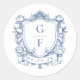 Estos elegantes calcomanías de Escudo de Monograma Azul Rosas franceses son perfectos para favores, tarjetas de lugar y más. Presentan un monograma de boda de escudo floral francés de época.