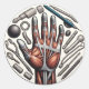 Este diseño pegatina representa el campo de la terapia ocupacional. Presenta una gama de símbolos sinónimos de terapia ocupacional, incluyendo herramientas de mano y comunes como bandas de resistencia. El diseño enfatiza las complejidades y el significado de la terapia manual, resaltada por un ilustracion manual anatómicamente detallado. Elija el tamaño en el menú de opciones.