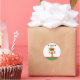 Pegatina Redonda Elf con regalos y fondo blanco