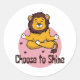Pegatina Redonda Elige Brillar Kawaii Feliz León Haciendo Yoga Pose