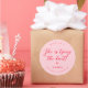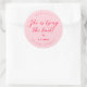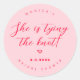 Pegatina Redonda Ella está atando el nudo rosa y la novia roja