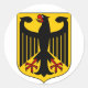 Escudo de Alemania. El escudo de armas de Alemania exhibe un águila negra (el "águila federal" del Bundesadler, antes "águila imperial" de Reichsadler) sobre un escudo amarillo (o, un águila exhibida a la sombra). Se trata de una reintroducción del escudo de armas de la República de Weimar (en uso entre 1919 y 1935) aprobado por la República Federal de Alemania en 1950. El diseño oficial actual se debe a Tobias Schwab (1887-1967) y fue introducido en 1928.