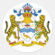 Escudo de Guyana. El escudo de armas de Guyana fue concedido por el Colegio de Armas el 25 de febrero de 1966. Incluye un escudo de un vestido de cabeza amerindio que simboliza a los indígenas del país, este escudo también se llama la Corona del Cacique; dos diamantes a los lados del vestido de cabeza que representa la industria minera; un casco (insignia monárquica); dos jaguares como partidarios sosteniendo un hacha, caña de azúcar y un tallo de arroz (simbolizando las industrias mineras, azucareras y arroces de Guyana); un escudo decorado con la lila Victoria regia, flor nacional de Guyana; tres líneas onduladas azules que representan los tres ríos principales de Guyana; y el ave nacional, el Canje Pheasant (hoazin Opisthocomus). El lema nacional "Un pueblo, una nación, un destino" aparece en el pergamino debajo del escudo.