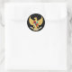 emblema nacional de Indonesia. El emblema nacional de Indonesia se llama Garuda Pancasila. La parte principal del emblema nacional indonesio es el Garuda con un escudo heráldico en el pecho y un pergamino apretado por las piernas. Los cinco emblemas del escudo representan a Pancasila, los cinco principios de la ideología nacional de Indonesia. Las garras de Garuda atrapan un pergamino de cinta blanca inscrito con el lema nacional Bhinneka Tunggal Ika escrito en texto negro, que se puede traducir libremente como "Unidad en la Diversidad". Garuda Pancasila fue diseñada por el Sultán Hamid II de Pontianak, supervisada por Sukarno, y fue adoptada como emblema nacional el 11 de febrero de 1950.