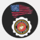 Pegatina Redonda Emblema USMC con bandera de Estados Unidos