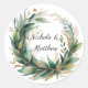Pegatina Redonda Emerald Green and Gold Floral Frame Wedding