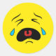 Esta triste cara de emoji está teniendo un mal día. Cara llorando con un fondo amarillo brillante.