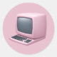Pegatina Redonda Emoji de computadoras Rosa Retro