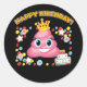 Pegatina Redonda Emoji de poop rosado Feliz cumpleaños a Chicas