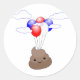 Pegatina Redonda Emoji Poo Volando Con Globos