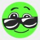 Pegatina Redonda Emoji verde Guay con gafas de sol