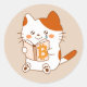 Pegatina Redonda Emotional cat reading Bitcoin book