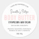 Elevar el diseño de embalaje de productos de mantequilla corporal con estas etiquetas redondas rosadas modernas. Este diseño femenino de color rosa y blanco de los productos de baño en círculo pegatina con tipos de letra serif a la moda hará que sus tarros se vean como un papel. Puede personalizar de todo el texto, agregar su nombre comercial y logotipo, enumerar los ingredientes del producto y hacer que este diseño de etiqueta comercial sea el suyo. El toque final perfecto para el embalaje de las jarras de cosmética.