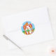 Este pegatina cuenta con un payaso y un elefante que actúa frente a una colorida carpa de circo.
