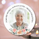 Recuerda a tu ser querido con estos hermosos pegatinas. El diseño incluye una foto y el texto personalizado adornado con hermosas flores colocadas sobre un fondo blanco (cambia fácilmente el color de fondo). Esto hace que la celebración de los favores pegatinas de la vida sea muy considerada y que la familia y los amigos aprecien.