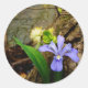 Pegatina Redonda Enanos enanos Iris flor azul morada blanca