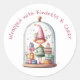 A charming Christmas sticker featuring a tiny elf under a glass dome — perfect for sealing envelopes, decorating gift boxes, or adding a touch of North Pole magic to any holiday package. Text is fully customizable to suit your festive message or family name.