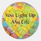 Productos divertidos con antecedentes de los tradicionales corazones de caramelo valentino con un overlay en forma de corazón amarillo y un texto de personalizable que dice "You Light Up My Life".