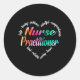 Pegatina Redonda Enfermera practicante Corazón Word Cloud Watercolo