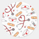 Enfermera Amor Imprimir Pegatinas redondos con Gorra de Enfermeras, Stethoscope del corazón, Banda y Medicación de fondo blanco.