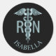 Pegatina Redonda Enfermero verde azulado RN Caduceus