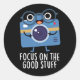Pegatina Redonda Enfoque En La Buena Cosa Positiva Pun Oscuro BG