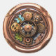 Pegatina Redonda Engranajes y Flores Steampunk de Cobre y Oro Metal