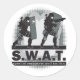 ¡Dos miembros del equipo de S.W.A.T fuertemente armados con escudos se preparan para la batalla! A continuación se presenta un texto de gran tamaño y un texto más pequeño sobre armas y tácticas especiales. ¡Un gran equipo de SWAT y regalos de las fuerzas del orden!