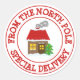 Entrega especial del taller Clásico Pegatina Redondo del Polo Norte de Santa. Diseño elegante para la temporada de vacaciones de los Navidades. Haz tus etiquetas de Papá Noel para regalos y cartas de correo. Pegatina de sello rojo redondo. Disponible en tamaño pequeño y grande.