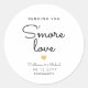 Elegante pegatina de bodas "Te mandas más amor". Personalice reemplazando el texto de ejemplo.