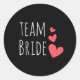 Diseño increíble con la cita "Equipo de la Novia" y tres corazones rojos. Gran y divertida idea de outfit para una despedida de soltera o para la fiesta de bodas.