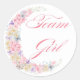 Pegatina Redonda equipo de luna floral rosa pastel chica ducha bebé