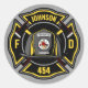 Diseño del Departamento de Bomberos - Emblema con casco y hacha. Personalizar con su nombre, número de estación/departamento y ubicación.