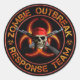 Equipo de respuesta al brote de Zombie, logotipo de círculo con símbolo de riesgo biológico, AK47 y cráneo zombie.