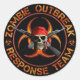 Equipo de respuesta al brote de Zombie, logotipo de círculo con símbolo de riesgo biológico, AK47 y cráneo zombie.