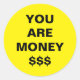 Eres un Inspirador Pegatina redondo clásico diseñado por Nisha Prabhu. Fondo amarillo dorado con negrita en negrita "USTED ES DINERO" con signos de dólar. Eres dinero, significa que eres valioso, importante, rico, tienes en ti algo más grande que el dinero. Ideas de regalos motivacionales inspiradores perfectos para cualquier ocasión. Lo que sea que quieras decir, estas inspiradoras ideas de regalo motivarán, excitarán y provocarán positividad. Personalizable completo. Personaliza con tus propias palabras inspiradoras.