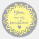 Lindos stickers de arte con letras a mano de You Are My Sunshine en amarillo y gris. Decoraciones modernas, chic y trendy para baby shower de niña o niño. Utilízalos como etiquetas de regalo, sellos de sobre o acentos para envolver regalos. --->>> ¡Combina exactamente las decoraciones del baby shower eligiendo tus propios colores! Simplemente haz clic en Personalizar, luego haz clic en el enlace Personalizar más. Una vez dentro del editor de diseño, haz clic en el cuadro de color a la derecha, luego selecciona el color para el fondo y el diseño.